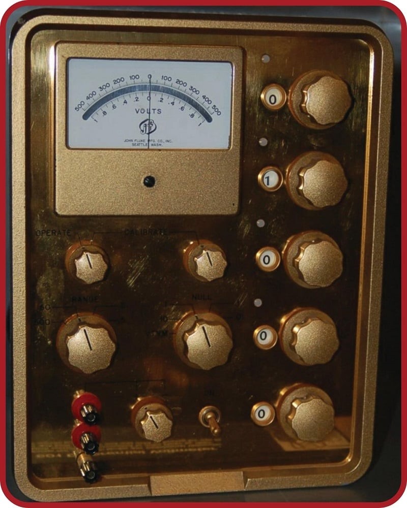 Спеціальні прилади нульового балансу вольтметра були виготовлені з прецизійними джерелами змінної напруги, вбудованими в них, які називаються диференціальними вольтметрами. Одним із таких приладів була модель Fluke 801, позолочена версія якої представлена тут у музеї вимірів Fluke.