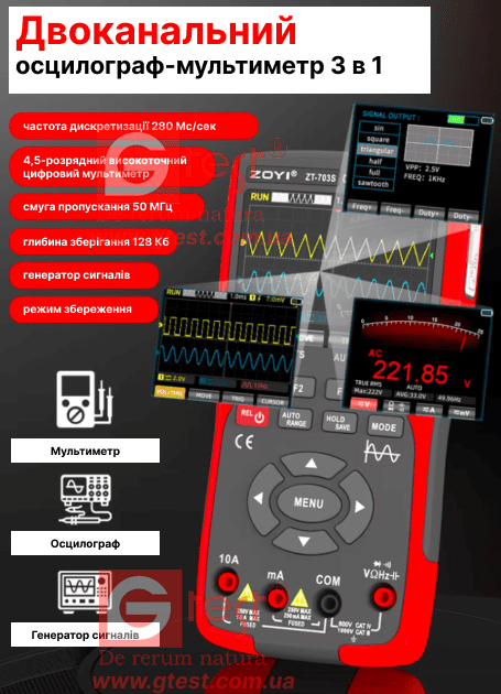 ZT-703S ZOYI Осцилограф-мультиметр-генератор сигналів 3 в 1