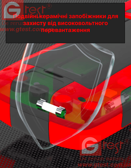 - Захист від перевантаження: режим мультиметра відповідає рівню безпеки CTAIII1000 В, режим осцилографа відповідає рівню безпеки CTAII600 В, відповідає вимогам сертифікаціїCE, АЦП з високою дискретизацією, подвійний керамічний запобіжник 600 мА-10 А, подвійний процес лиття під тискомABS+ захищає від негативного зовнішнього впливу.