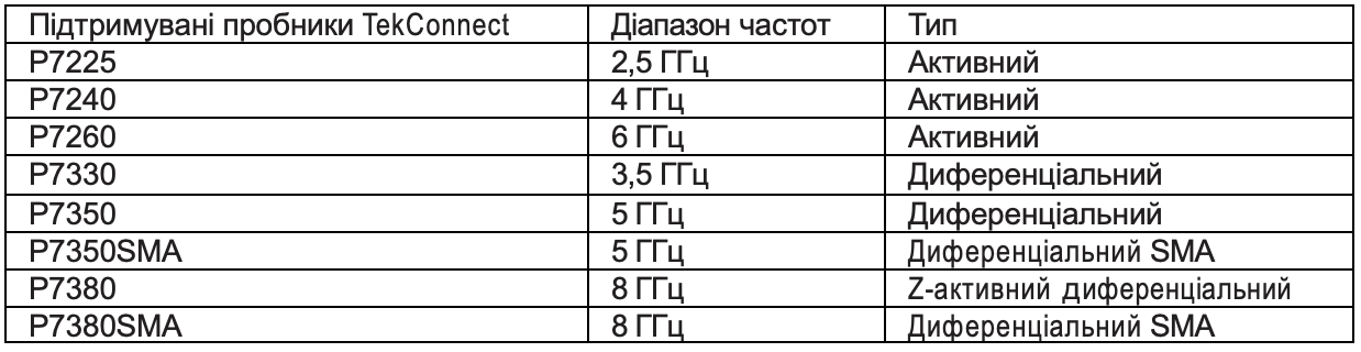 - Інтерфейси для пробників загального застосування TekConnect® для налагодження пристроїв РЧ.