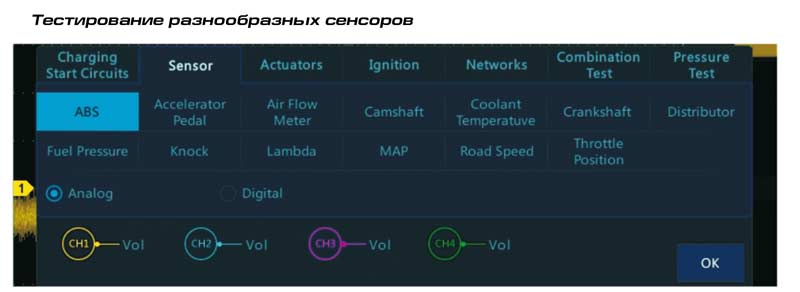 Осцилограф ATO1102 має додаткову функціональність для тестування електронних компонентів та систем автомобілів: