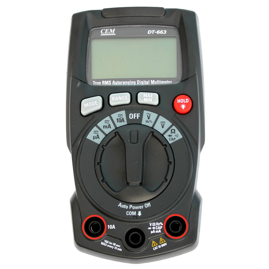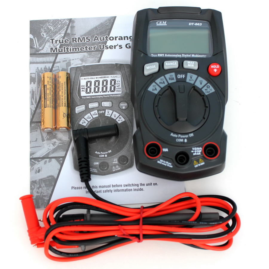 Мультиметр цифровий DT663 , виробництва компанії CEM everbest , являє собою нове покоління недорогих мультиметрів і призначений для вимірювання постійної та змінної напруги і струму, опору до 40 МОм, ємності до 4000 мкФ, частоти до 10 кГц, шпаруватості, тест діодів, автовимкнення живлення .