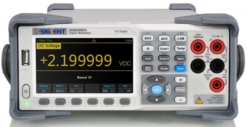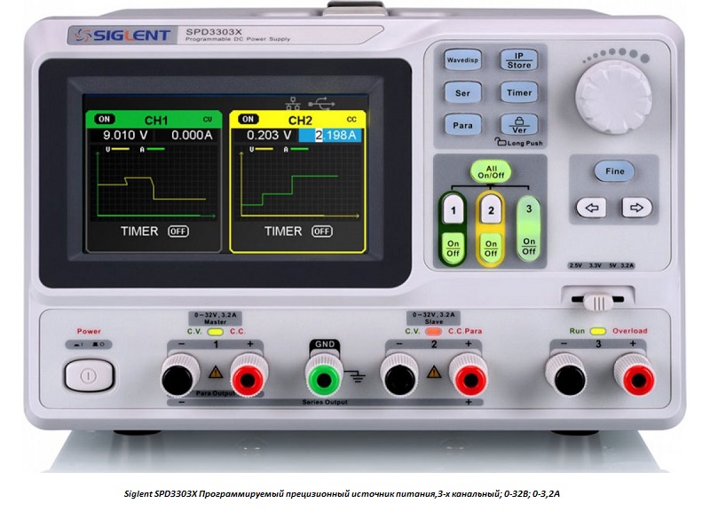 Для вирішення описаних вище завдань SDM3065X може використовуватися спільно з 3-х канальним програмованим джерелом живлення Siglent SPD3303C , особливостями якого є:
