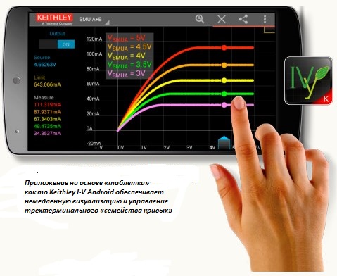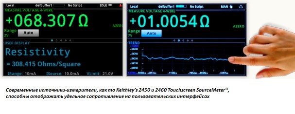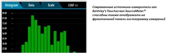 У той же час джерела-вимірники від Keithley можна легко конфігурувати для застосування методу джерело напруги/вимірювання напруги або джерело струму/вимірювання напруги. Змінні параметри тестування важко генерувати на звичайних вимірювальних приладах, в той час як кольоровий графічний інтерфейс моделей Keithley 2450 і 2460 безпосередньо відображають на екрані графік змін, в той час як процес збору даних продовжує йти безперервно.
