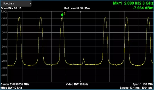 Багатотонові сигнали складаються з декількох синусоїд, при цьому генератори SSG5000X підтримують до 20 тонів. Такий режим широко застосовується при вимірюваннях аудіо сигналів, тестуванні підсилювача та приймача щодо нелінійних спотворень, наземних і супутникових комунікаційних тестах.