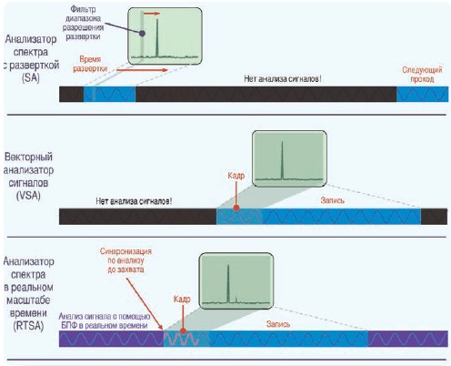 Перш ніж приступати до аналізу сигналу та діагностики, необхідно зробити запис досліджуваного сигналу. Отже, розглянемо технологію, що дозволяє аналізаторам спектра реальному масштабі часу захоплювати події, які пропускають інші аналізатори.