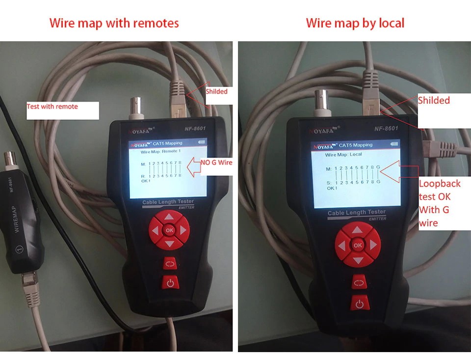 У результаті я купив NF-8601W, і це відмінне співвідношення ціни та якості . Один із моїх техніків по установці використовував цей прилад у трьох окремих додатках: два для кабелів CAT5 та одне для проводки BNC, і йому подобається простота використання.