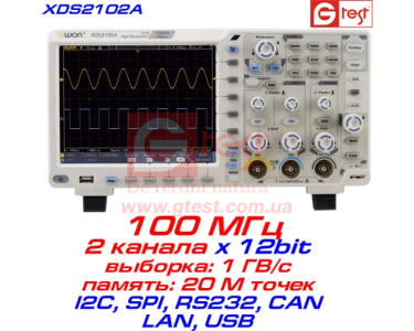 Перше: xDS2102A осцилограф 12bit, 2х100МГц, 20М пікселів (https://gtest.com.ua/uk/xDS2102A.html)
