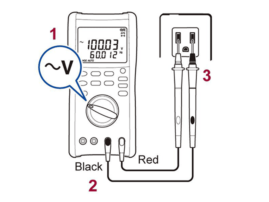 Для вимірювання змінної напруги, наприклад, напруги в розетці або лінії автоматичного вимикача або напруги живлення частини обладнання, налаштуйте цифровий мультиметр таким чином: