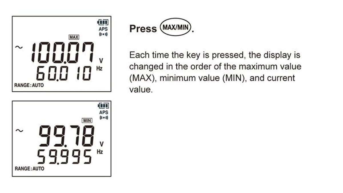 Функція запису: ця функція записує максимальні та мінімальні вимірювані значення. (Натисніть клавішу MAX/MIN.)