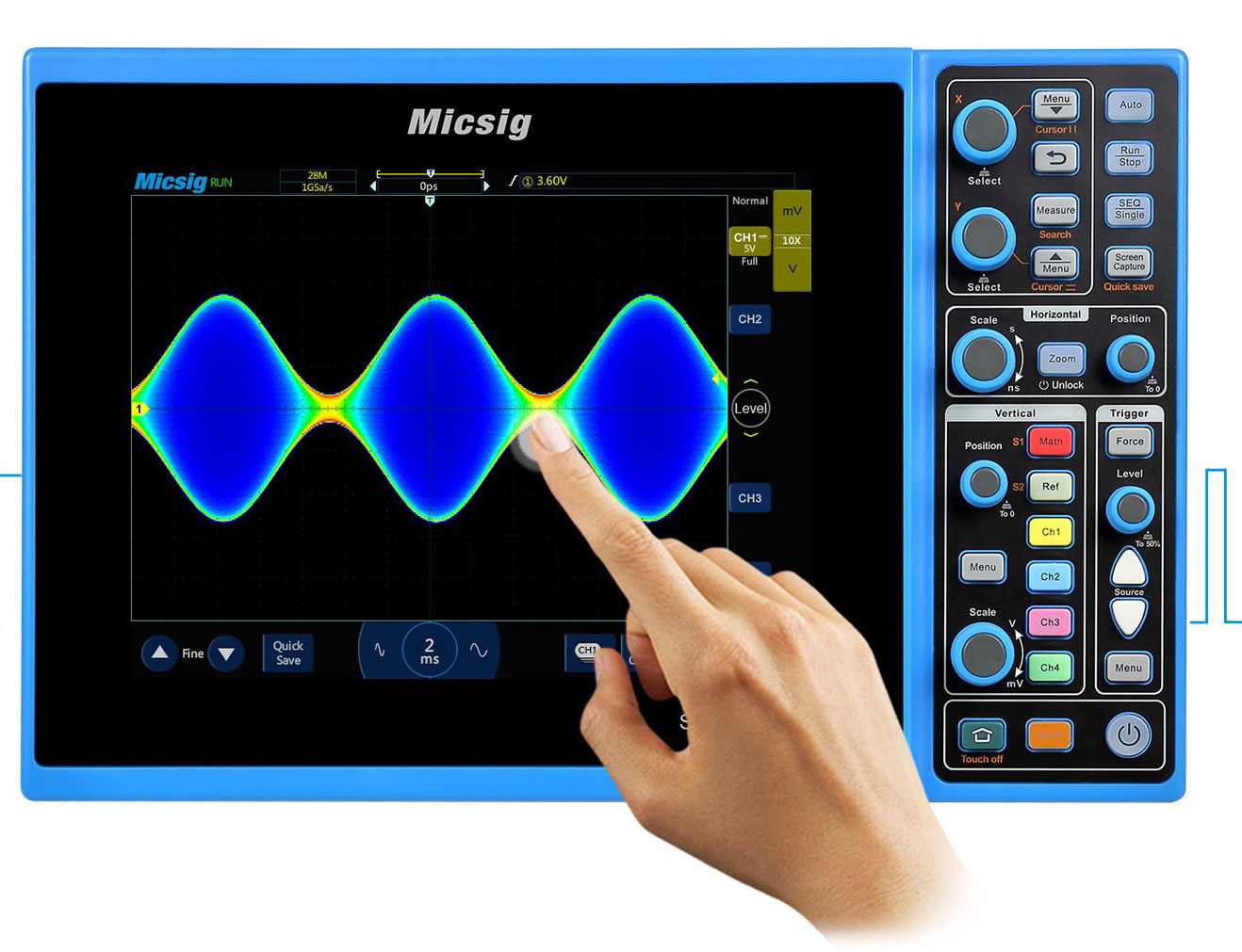 Важливою відмінністю осцилографів Micsig серії STO1000 від осцилографів серії TO1000 є наявність повноцінної клавіатури, яка доповнює функціональність сенсорного дисплея і пропонує користувачеві великі зручності управління осцилографом.