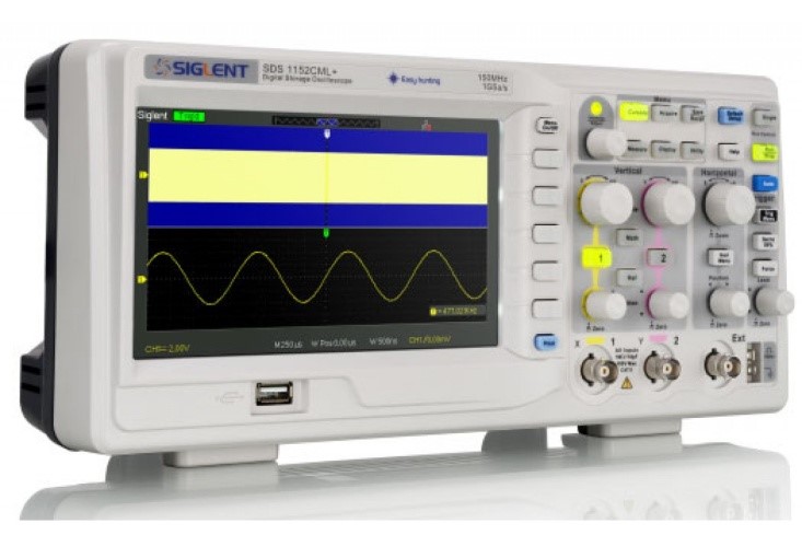 - 2-х канальний SDS1152CML + зі смугою пропускання 150МГц, швидкістю вибірки 1 ГВ/с, об'ємом пам'яті 2М пікселів (7М пікселів в режимі запису) https://gtest.com.ua/sds1152cml-plus.html ,