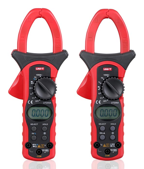 - струмові кліщі з максимальним вимірюваним струмом до 1000 А серій UT205A, UT209A , популярні струмові кліщі UT213C, UT216C .