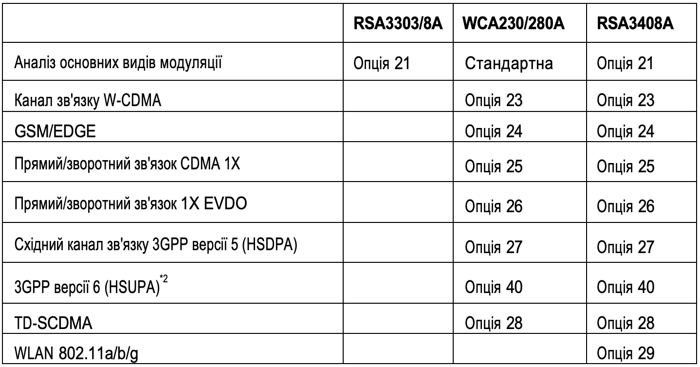 *2 Для аналізу сигналів 3GPP версії 6 (HSUPA) опції 23, 27 обов'язкові поряд з опцією 40