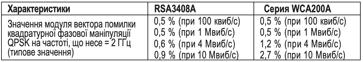 Максимальна швидкість передачі символів – RSA3408A: 51,2 Мвиб/с. Серія WCA200A: 25,6 Мвиб/с.