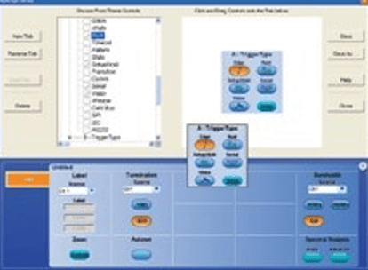 Ви можете за лічені хвилини створити власну панель інструментів за допомогою простого візуального процесу перетягування мишею. Створений інтерфейс також легко викликається за допомогою спеціальної кнопки MyScope з меню на панелі кнопок/меню осцилографа. Можна створити практично необмежену кількість інтерфейсів, що дозволяє кожному, по-перше, працювати зі своїм набором функцій, що найчастіше використовуються. По-друге, швидше втягнутися в роботу після перерви у користуванні осцилографом. По-третє, підвищує ефективність роботи досвідчених користувачів. Всі необхідні функції розташовуються в одному вікні, позбавляючи вас необхідності відкривати одне меню за іншим для повторного виконання операцій.