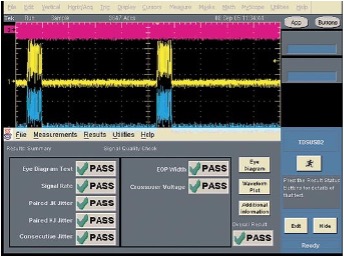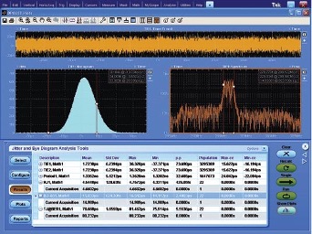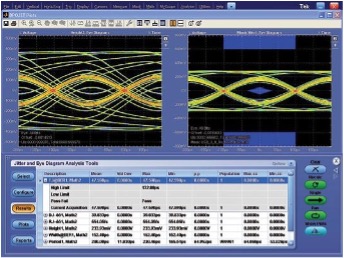 Аналіз джиттера, часових параметрів та глазкових діаграм – серія DSA70000B характеризується найточнішими вимірами джиттера та часових параметрів сигналів, а також повним набором засобів аналізу. При розробці сучасних систем дедалі більше уваги приділяється джиттеру. Можна проводити вимірювання джиттера за безперервні цикли синхронізації кожного існуючого імпульсу в режимі одноразового захоплення. У режимі постійного захоплення можливо проводити аналіз тимчасових параметрів системи за різних змінних умов функціонування, а також відокремлювати випадковий джиттер від детерміністичного.