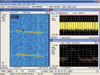 Вікно управління вимірами спектра Програмне забезпечення для спектрального аналізу надширокосмугових сигналів (опція UWB) дозволяє проводити аналіз різних параметрів без налаштування інтерфейсу користувача. Крім того, пакет автоматичного аналізу WiMedia дозволяє досліджувати зміну частоти та амплітуди складних широких сигналів з часом за допомогою спектрограм реального часу у смузі 20 ГГц.