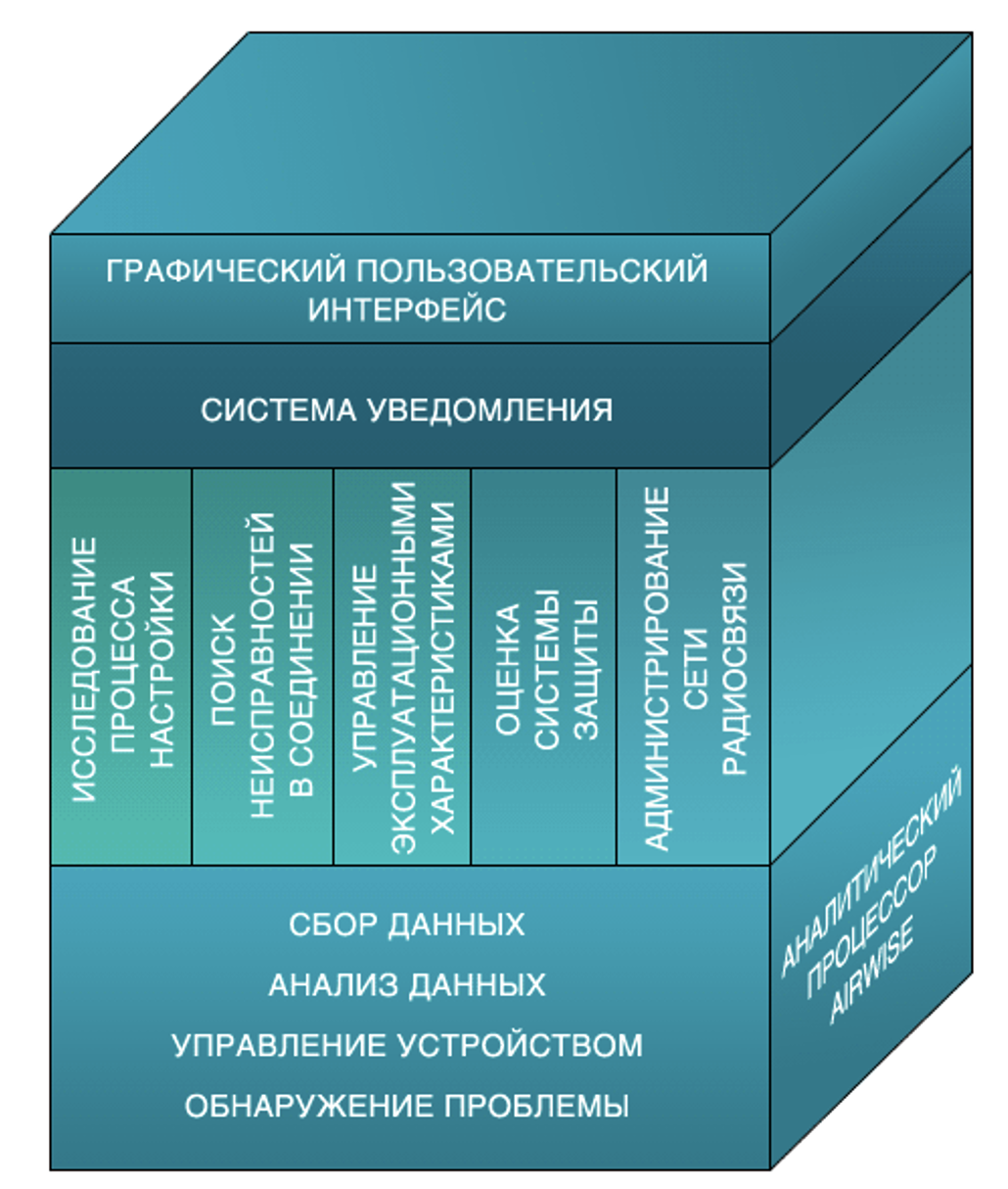 Процесор AirWISE у фоновому режимі постійно виконує такі функції: автоматичний збір статистичної інформації про характеристики мережі, ідентифікація та відстеження пристроїв радіозв'язку та їх відмінних характеристик, контроль та аналіз стану WLAN, локалізація проблем WLAN та пропозиція рішень для мережевих проблем.