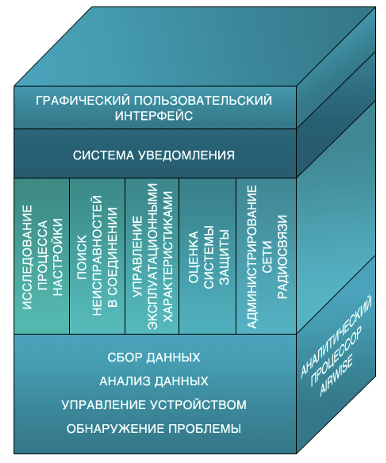 Процесор AirWISE у фоновому режимі постійно виконує такі функції: автоматичний збір статистичної інформації про характеристики мережі, ідентифікація та відстеження пристроїв радіозв'язку та їх відмінних характеристик, виявлення проблем у WLAN та пропозиція можливих рішень для мережних проблем.