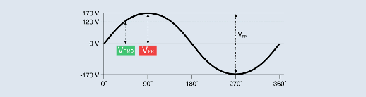 Оскільки напруга синусоїди змінюється з часом, тобто вона (напруга) не дорівнює його піковому значенню. Ефективна напруга сигналу змінного струму є його еквівалентом у формі напруги постійного струму і може бути розрахована лише за допомогою вимірювальних приладів RMS або True RMS.