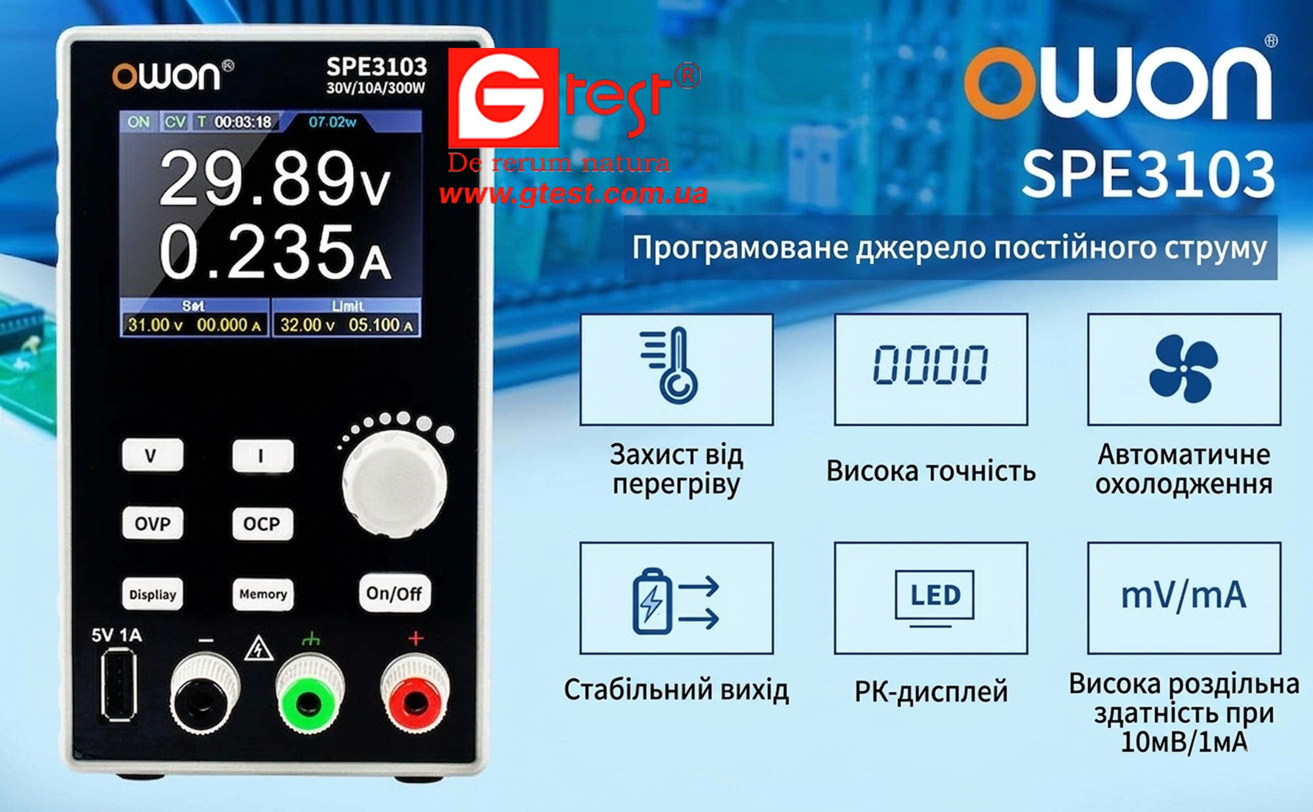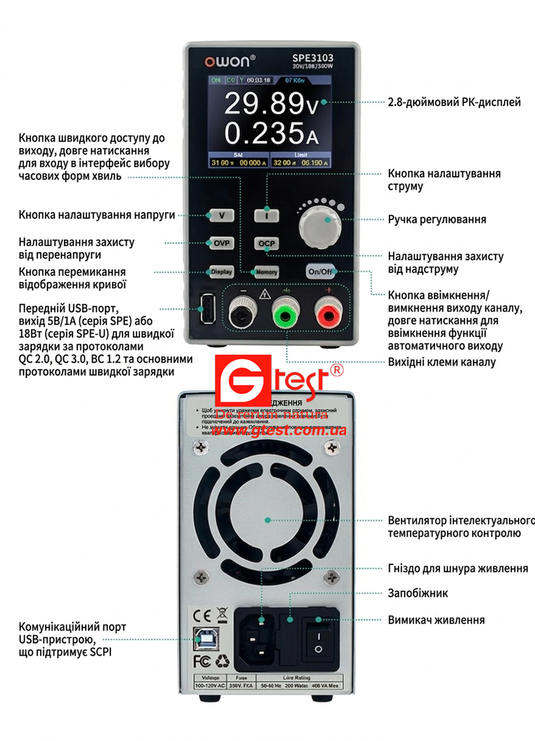 • Інтерфейс зв'язку USB, підтримка SCPI
