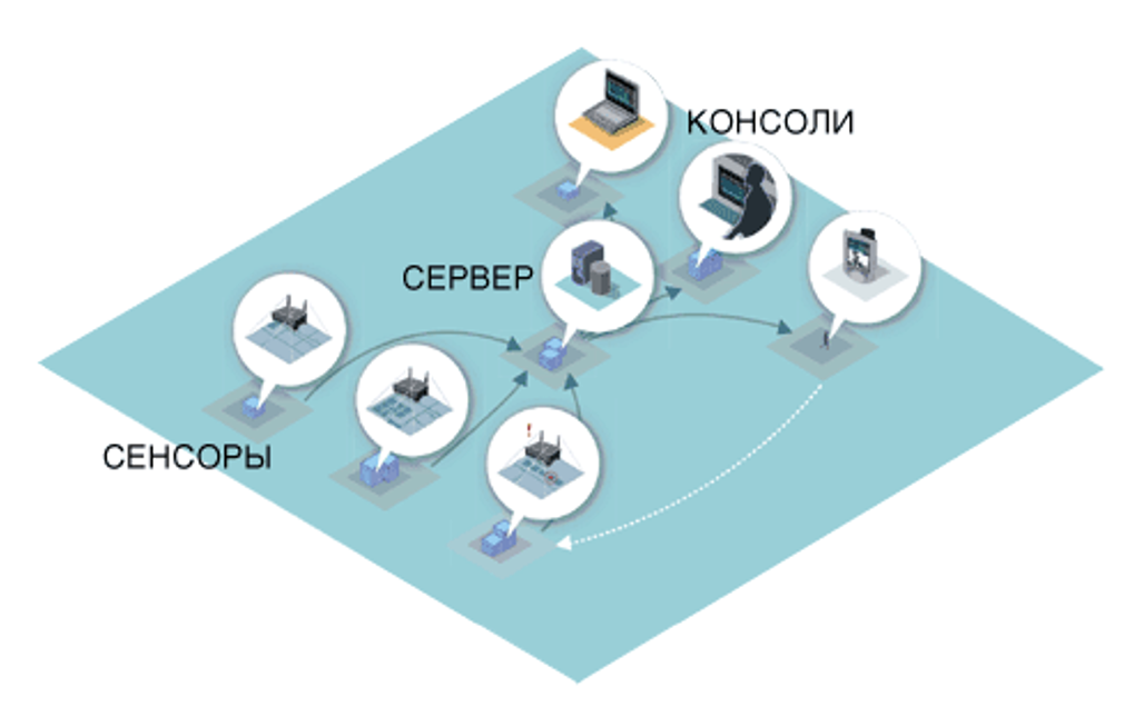 Рис.1 Сенсори AirMagnet забезпечують цілодобове покриття області дії Wi-Fi, виявляючи понад 60 проблем у системі захисту, з робочими характеристиками та при конфігуруванні мережі.