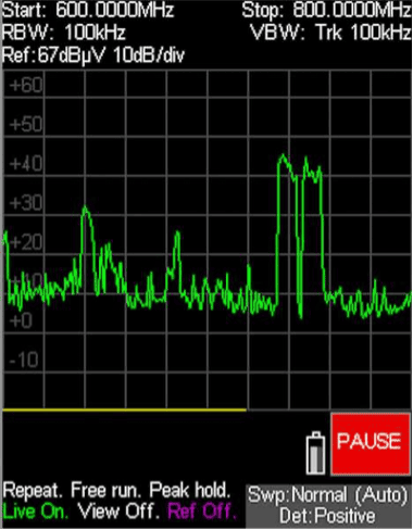 Хотілося б, щоб нижній діапазон частот від 1 до 10 МГц не було втрачено, оскільки це важливо для вимірювань кондуктивних випромінювань. Нарешті, час роботи від батареї набагато коротший - 3 години (мінімум) проти 8 годин для 2,7 ГГц PSA2702T.