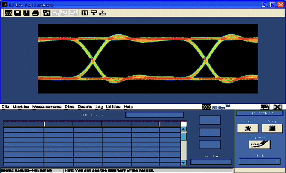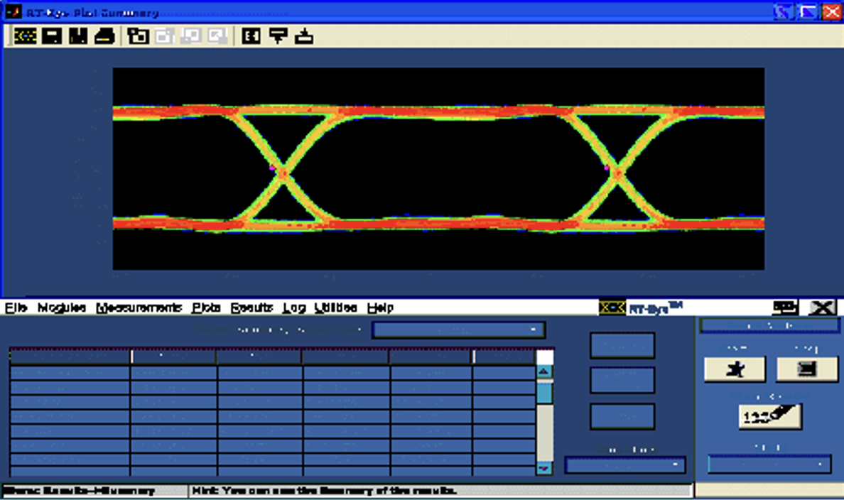 На рисунку 2 наведена осцилограма сигналу передачі зі швидкістю 6,25 Гбіт/с з часом наростання 25 пс (з 20 до 80%), що відповідає 33 пс при переході від 10 до 90%. 33 пс відповідають 21% тривалості імпульсу. Згідно з формулою (1) осцилограф для дослідження таких сигналів повинен мати плоску АЧХ та лінійну ФЧХ у діапазоні частот до 15 ГГц. Таким чином, осцилограф з характеристиками, наведеними на рисунку 1, не підходить для цієї мети.