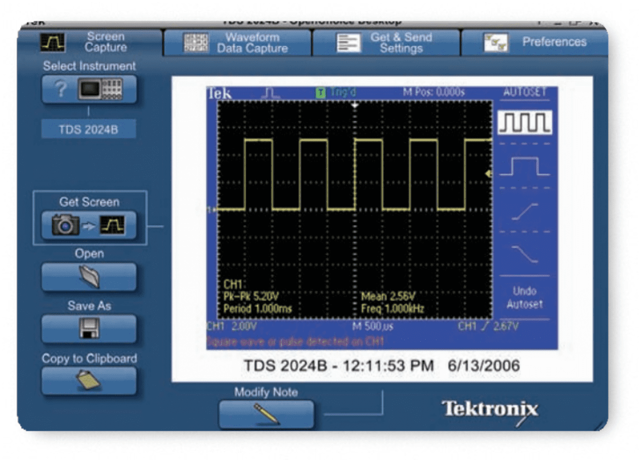 Інженерам-конструкторам у лабораторіях та фахівцям у технічній галузі часто потрібно записувати операції, які виконуються за допомогою осцилографа. Вони можуть зберігати знімки екранів на знімні пристрої, а потім копіювати файли на комп'ютер вручну. Просте використання OpenChoice Desktop спрощує процес документування даних за допомогою прямої передачі знімків екранів на комп'ютер через USB.