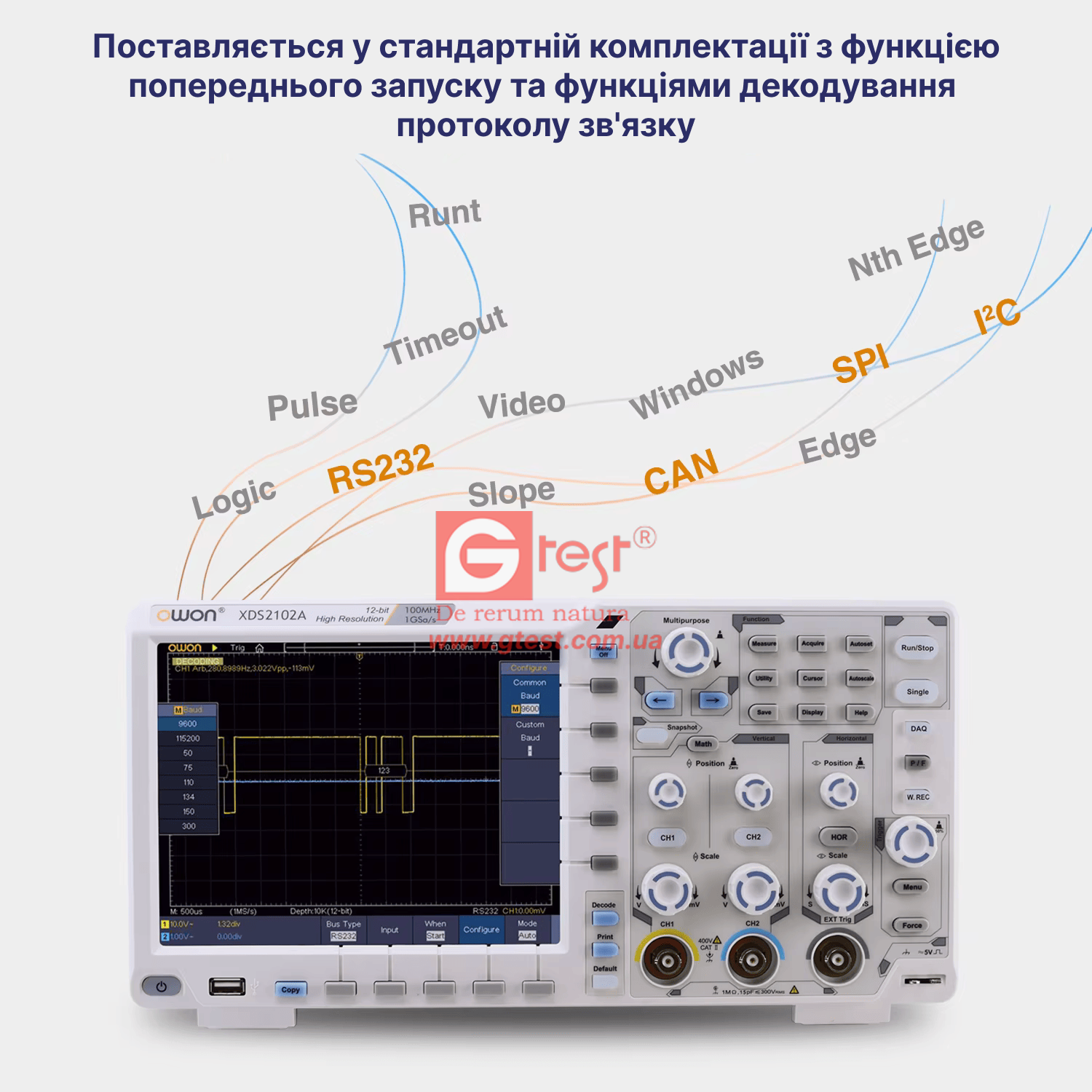 xDS2102A осцилограф 12 біт 2х100МГц 20М пікселів