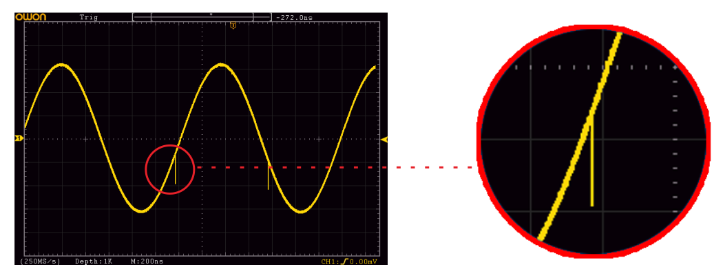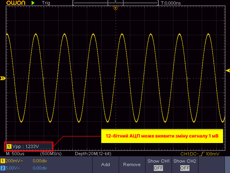 12-бітний АЦП забезпечує точне вимірювання значення. Таким чином, осцилограф може виявити зміну.