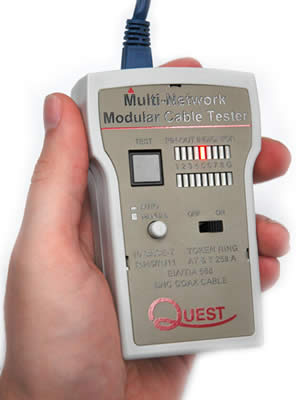 Багатомодульний кабельний тестер призначений для перевірки всіх можливих типів кінцевих кабелів. Він оснащений вбудованим компонентом для тестування телефонних та Ethernet-з'єднань з роз'ємами RJ45, RJ12 та RJ11.